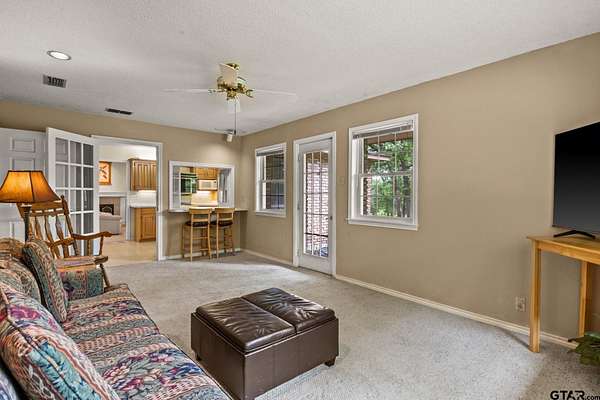 Escape to your private estate on almost 30 acres of rolling hills within an exclusive gated community of five homes. Nestled in a dense hardwood forest, this secluded property offers unparalleled tranquility and abundant wildlife. Designed by a renowned architect, this home features energy efficiency, enhanced insulation, soundproofed walls, and ample windows for passive solar heating. The kitchen includes a breakfast nook, breakfast bar, and beautiful cabinetry. The formal dining room boasts floor-to-ceiling windows with backyard views. Two living rooms provide ample space for relaxation. The primary suite features a private retreat with exterior access, an office, spa-like ensuite bath with hot tub, dual closets, and dual sinks. Two guest rooms share a jack and jill bath, with a full hall bath for guests' convenience. Outdoor amenities include covered patios, a private concrete driveway, ultra-fast 5G Wi-Fi, and proximity to large lakes for fishing and recreation. This exceptional property includes 3 bedrooms, 3 full baths, a spacious master suite, and a garden room overlooking the serene woods. Don't miss the opportunity to own this unique blend of luxury, nature, and serenity.