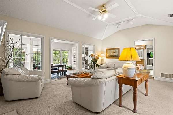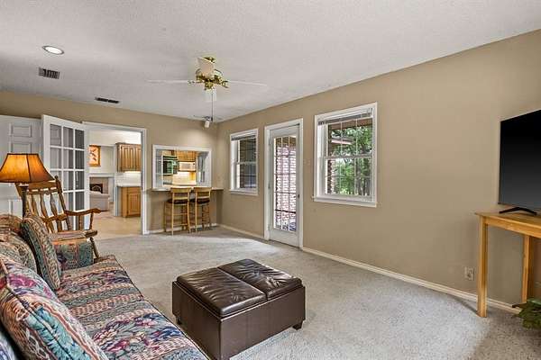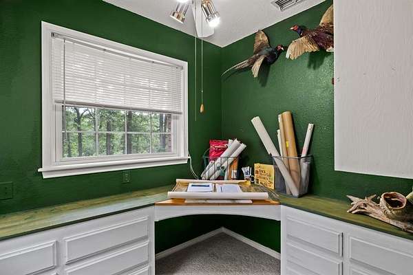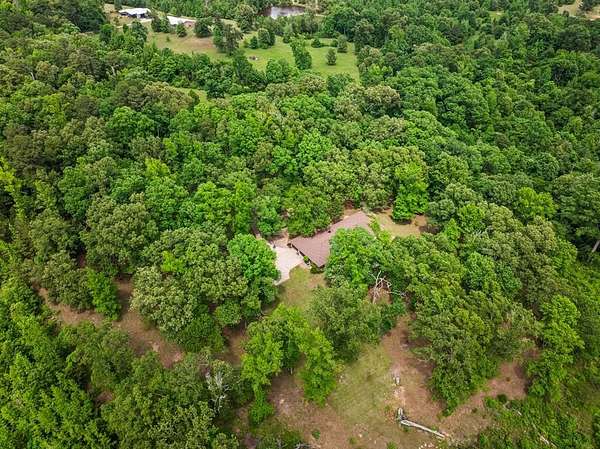 Escape to your private estate on almost 30 acres of rolling hills within an exclusive gated community of five homes. Nestled in a dense hardwood forest, this secluded property offers unparalleled tranquility and abundant wildlife. Designed by a renowned architect, this home features energy efficiency, enhanced insulation, soundproofed walls, and ample windows for passive solar heating. The kitchen includes a breakfast nook, breakfast bar, and beautiful cabinetry. The formal dining room boasts floor-to-ceiling windows with backyard views. Two living rooms provide ample space for relaxation. The primary suite features a private retreat with exterior access, an office, spa-like ensuite bath with hot tub, dual closets, and dual sinks. Two guest rooms share a jack and jill bath, with a full hall bath for guests' convenience. Outdoor amenities include covered patios, a private concrete driveway, ultra-fast 5G Wi-Fi, and proximity to large lakes for fishing and recreation. For your vehicles, the home includes a 1-car garage and an attached 1-car open carport. This exceptional property includes 3 bedrooms, 3 full baths, a spacious primary suite, a versatile flex room ideal for a fourth bedroom, home gym, or studio, and a garden room overlooking the serene woods. Don't miss the opportunity to own this unique blend of luxury, nature, and serenity.