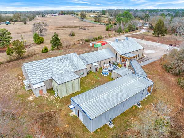 Rare commercial opportunity just minutes from Winnsboro, TX. This expansive complex comprises four structures totaling over 14,000 square feet of versatile space, set on nearly 8 acres with room to expand. Ideal for corporate ventures, manufacturing, or distribution, this property offers move-in readiness with a broad suite of built-in features. Strategically located about halfway between Dallas and Shreveport, offering convenient access for regional business operations. A cooperative-ventures dream location with ready-to-use facilities. Investment considerations. Expanded electrical capability supports heavy equipment and high-demand processes. Ample parking and outdoor space facilitate loading, staging, and future growth. Robust infrastructure (security, climate control, tornado vault) enhances operational reliability.Key featuresFour interconnected structures totaling 14,000+ s/fPrivate offices, lobby, and kitchen areaMultiple heated and cooled, zoned warehouse spacesLoading dock and tornado vaultComprehensive utility package: commercial air compressors with tanks, dehumidifiers, large heating/air unitsTwo cooling towers; updated security systemElectrical capacity: over 200 amp, expandable up to 480 ampAll-concrete driveway and a massive, 50+ space parking lotNearly 8 acres of land with potential for expansion