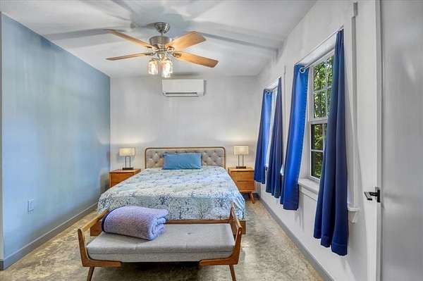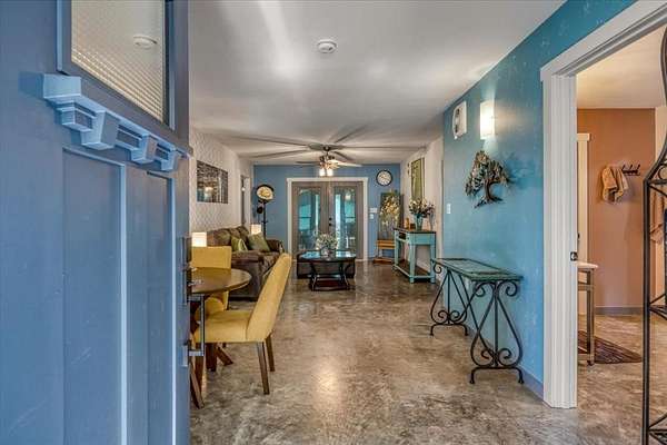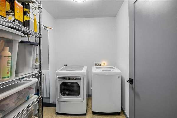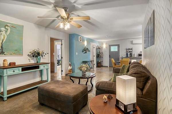 Step inside and you'll find an industrial-style kitchen, open and functional, complete with a range, dishwasher, refrigerator, washer & dryer, and dehumidifier-all included in the sale. The cozy living area comes furnished with a sofa, end tables, and a coffee table, making this home move-in ready from day one. A huge bonus is the sealed concrete floors, making maintenance a breeze.