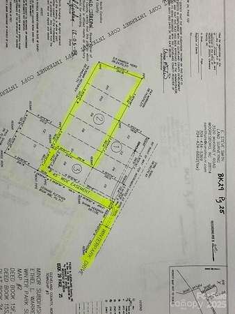 Approximately 3.32 Acres subject to survey. Winter Park Drive pavement ends and this is entered by an unpaved easement that would need to be verified by survey. For more than one homesite you would need approval from Cleveland County and the seller believes the road would have to be paved also. The plat in the photo is an old plat and the road was never installed for this land. County water may be available but septic would be needed. For county water they will only drop meter where the payment is approximately and that would need to be verified with Cleveland County water. There are old restrictions for Winter Park. The land has not yet been perked. There is a pathway cut so that you can walk the property and there is a creek that crosses the corner of the property.
