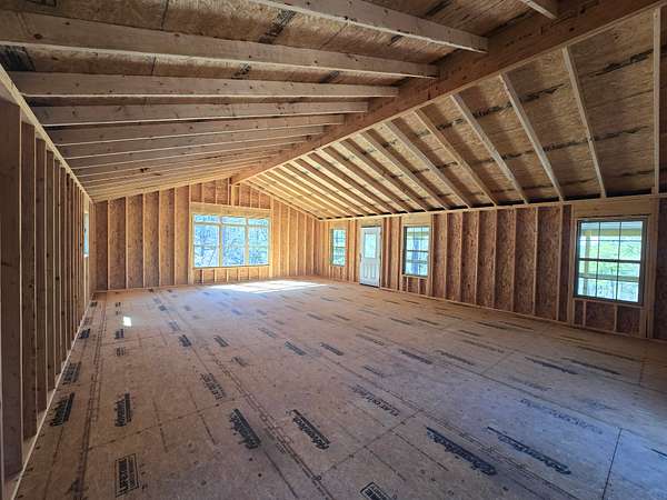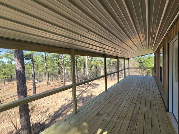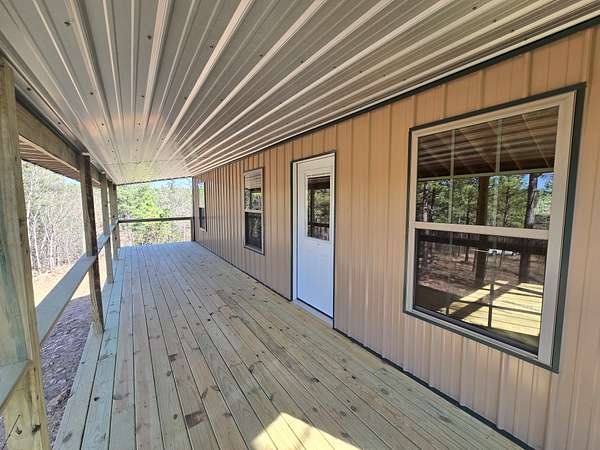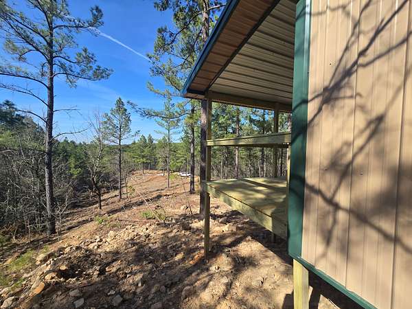 Cabin: There is a newly constructed cabin on the property with a 25 ft x 35 ft main living area and an 8 ft x 35 ft covered front porch. The cabin sits on a cleared and levelled pad, has a post and beam foundation and low maintenance metal exterior. The cabin will be sold as a shell and not finished out on the inside.