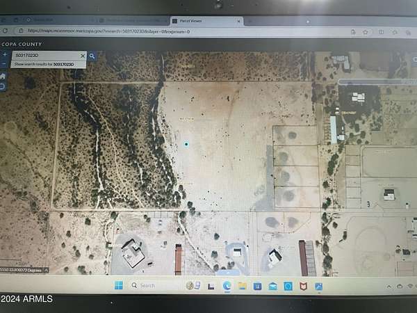 Est $8,315/moHigh-end area, with site-built homes and large horse set ups surrounding property. Very nice 20 Acre Tract which has been partial leveled in preparation for Home Site, Barns and Arena set-up. There are Easements both from the South and North into property. Property is totally fenced with Pipe fencing also included is 4- 100' X 220'' pipe horse pens. Close to Wickenburg and Surprise.