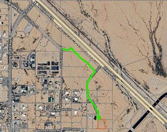 Heading West on Grand Ave, turn left on N 203RD Ave, left on W Gordon Ct, On the cul-de-sac turn left to the terrain trail, turn left on Rancho St which is a black unpaved gravel which will take you to the lot. Last pictures will give you a map to get there.