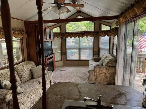 Est $761/moEagle Lake is a premier Park Model Home Community for VACATION use only but able to be used all year round with 70 Acre lake, clubhouse, Olympic size swimming pool, outdoor Jacuzzis, tennis courts, recreation areas, fitness room and extensive planned activities. Park Model Home is included in the asking price and measures 399 sq ft. Florida Room located on property included in asking price. Water, sewer, dumpster use and 24 hour security is included with the yearly dues. Zoning prohibits using as a primary residence. Cash sales only. To view all our listings please visit our website