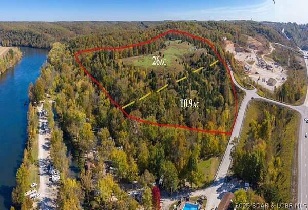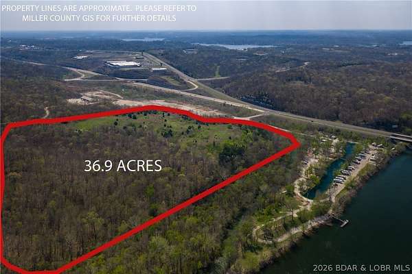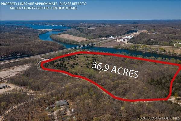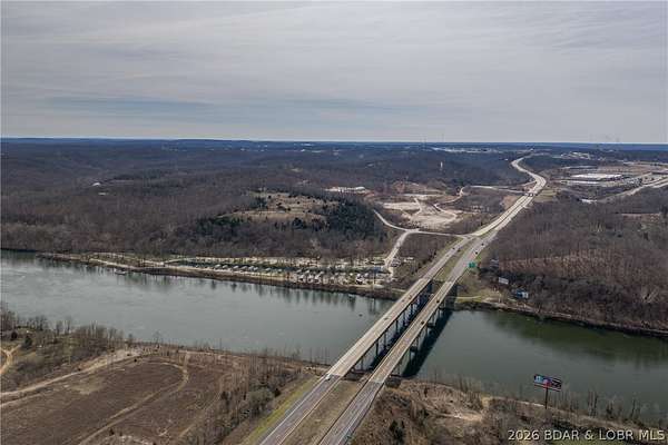 37+/- acres positioned at the front door to Lake of the Ozarks-the very first impression when arriving at the lake. Elevated high above Business 54 at the Bagnell Dam Blvd/HH & Route 242 corridor, this property delivers unmatched visibility, exposure, & panoramic views of the Osage River, Bagnell Dam, and the iconic Lake of the Ozarks sign. Rare opportunity to own one of the most strategic and visually striking tracts in the region. The land offers a gentle, mostly level topography, partly located in Lake Ozark city limits(C2 zoning) and partly in Miller County with no zoning-creating flexibility for a wide range of development options. Utilities are nearby, making this a practical as well as powerful investment. Surrounded by major retail & high-traffic destinations including Menards, Kohls, CVS, Aldi, and the theater. All located within sight of 2 proposed casino developments, the growth potential here is undeniable. Ideal for a signature project-winery, restaurant, wedding venue, luxury resort, or mixed-use development-this property has the scale, setting, and presence to become a true landmark. If you're looking to create something iconic at the lake, this is where it starts.