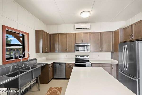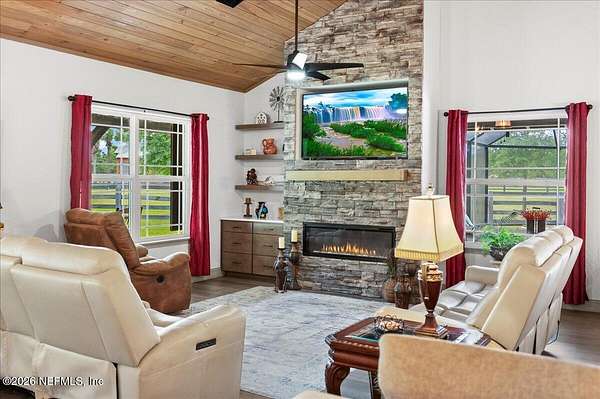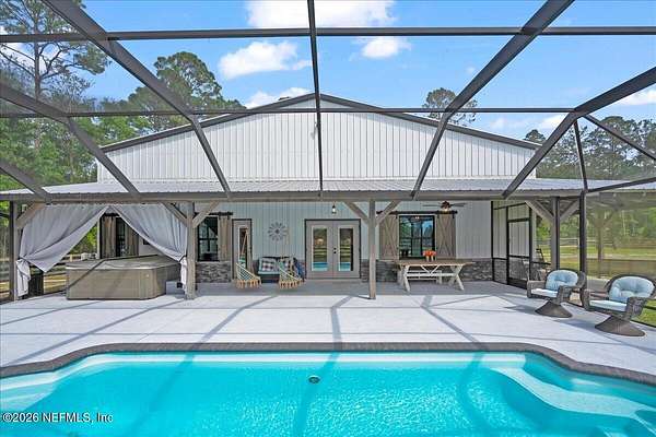 Welcome to South Georgia's Ultimate Dream Property - A Rare All-in-One Barndominium, Event Venue & Equestrian Estate! Imagine a place where luxury living, unforgettable events, and world-class equestrian facilities come together on 7.5 acres of gated, fully fenced land - this is Big Horse Equestrian and Event Center. Whether you're looking for a barndominium with a pool, a spectacular wedding/event venue, or a top-tier equestrian center with stables and pastures, this one-of-a-kind estate has it all. Let's start with the modern barndominium, custom-built in 2021. This stunning aluminum structure is spray foam insulated and boasts a massive 30x50 garage with 20-foot ceilings and 12-ft pull-through doors - perfect for storing RVs, boats, and all your toys. Step inside to discover a gorgeous open-concept living space with soaring cedar ceilings, a high-end custom kitchen featuring quartz countertops, a huge island, and elegant white shaker cabinetry. The main level includes 4 spacious bedrooms and 2 spa-quality bathrooms, including a master suite with a rainfall shower and beautiful tile finishes. Upstairs, a private loft offers a cozy living area, kitchenette, 2 additional bedrooms, and a full bath - ideal for guests, extended family, or a second living space. Step outside to relax in your screened-in in-ground pool and hot tub, or unwind under the expansive covered front and side porches while soaking in the peaceful countryside views. But that's just the beginning... The event venue is a showstopper: over 4,500 sq ft of covered, that is perfect for weddings, parties, and gatherings of up to 220 guests or more. It includes a commercial-grade kitchen, beautifully appointed men's and women's restrooms, and a luxurious bridal suite which is all climate-controlled space, - all separate from the main home for optimal privacy and functionality. For equestrian lovers, the state-of-the-art horse stables feature 14 stalls and a fully equipped groom's quarters with a bedroom, kitchen, living area, and bathroom - the grooms quarters are heated and cooled for year-round comfort. With 7 fenced pastures, dedicated training, grazing, and feeding areas, this property is truly a horse lover's paradise. Whether you're dreaming of hosting elegant weddings, building an equestrian business, or simply living in a spectacular country retreat, this exceptional property checks every box. Don't miss this rare opportunity to own a piece of South Georgia heaven.