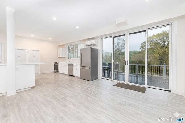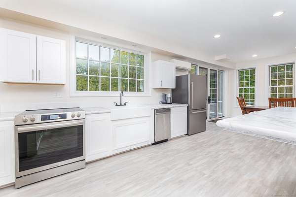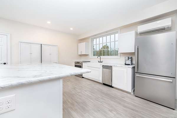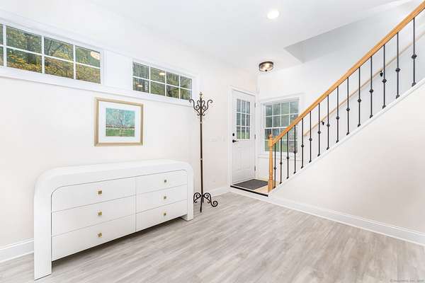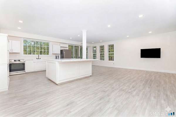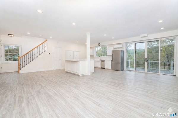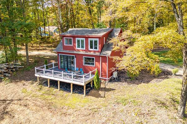 This completely remodeled guest cottage offers the perfect retreat for weekend getaways or full-time living. The heart of the home is the great-room living area, featuring a large center island-ideal for working from home or entertaining guests. Upstairs, you will find a bedroom suite with a dressing area, a large closet, a full bath, and a laundry closet. Indoor-outdoor living begins on the spacious deck, where you can unwind while overlooking tranquil wooded views and a serene pond. Flexible furnishing options available: choose between partially furnished or unfurnished to suit your needs. The home features wall-mounted TVs and includes two dedicated parking spaces.