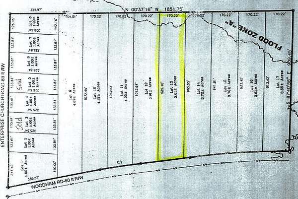 Est $422/moLot 13 has 3.81 acres. Great lot to build your new home on. Survey is available.