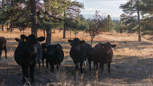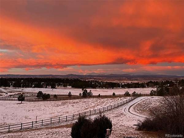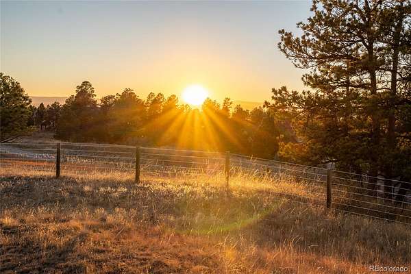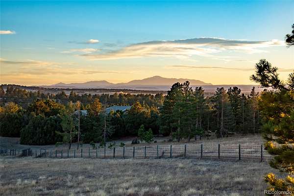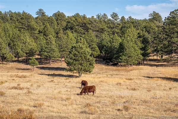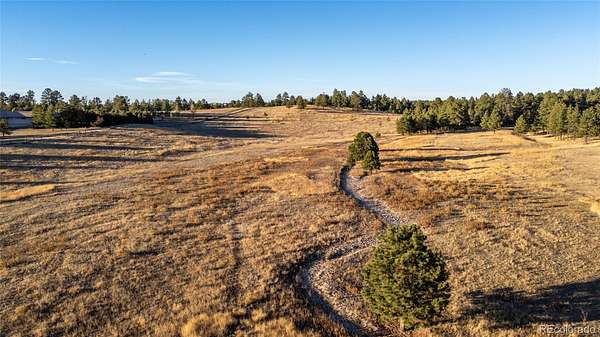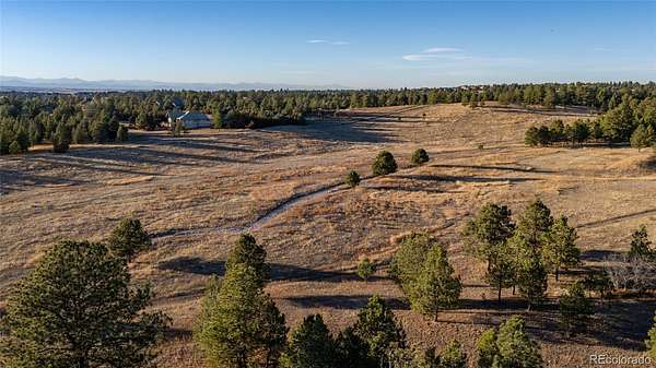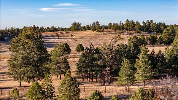 Nestled on a quiet cul-de-sac within the prestigious Evans Ranch Community in Parker, Colorado, this rare 35-plus acre acreage offering invites you to imagine the ultimate private estate or family sanctuary. Towering mature pines create a majestic canopy overhead, while lush grass meadows open out beneath the sky—perfect for 4-legged companions and outdoor lifestyle lovers alike.