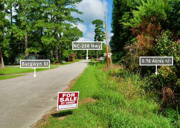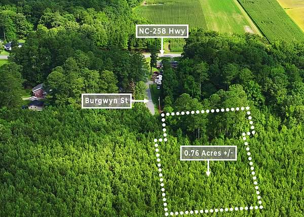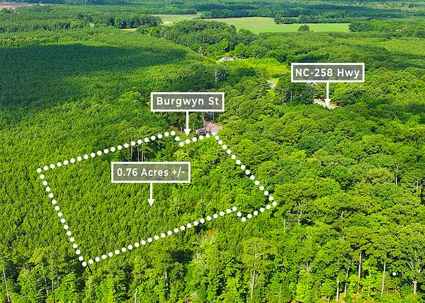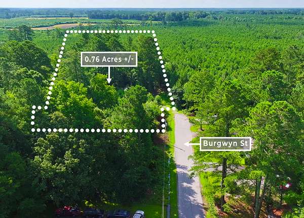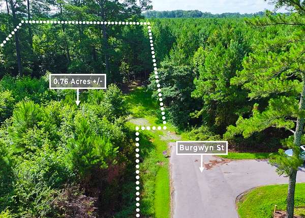 The parcel is fronted by Burgwyn Street, a local road with nearby residential development.
