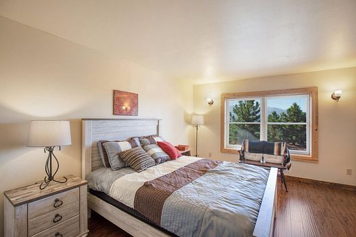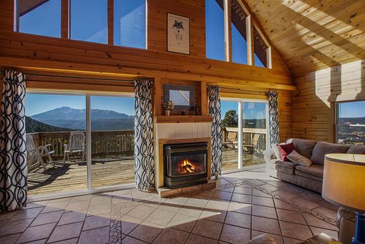 What makes this beautiful log home more desirable from others in Woodland Park is the million dollar views of Pikes Peak and surroundings. Sitting on 10 acres of gorgeous forested land backing up to Pikes Peak National Forest, this property is a dream come thru for the outdoor recreation enthusiast and nature lover. This lovely 3 bedroom, 2 bath log home has also a bonus room, being used as an office and another one used as storage. Sit in the spacious living room with gorgeous vaulted ceilings and enjoy the amazing view while warming up to a fire on the gas fireplace or go outside onto the fantastic deck and breath the fresh mountain air and enjoy the peacefulness while watching the views, the forest and abundant wildlife. Miles of hiking, mountain biking, ohv and horse back driving trails are everywhere within the Pikes Peak National Forest. Fishing, paddle boarding and canoeing are located within a few minutes at Rampart Reservoir. Don't miss the opportunity to make this amazing property your home!