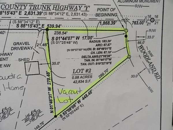 Est $422/moBuild that beauty on this 1 Acre lot in the Woodland Subdivision, just off Cty Rd Y, East of Hwy 14, between Viroqua and Westby. Great location if you prefer rural living. Natural gas and electricity are at the lot line. This lot has frontage on both Cty Rd Y and Woodland Rd.