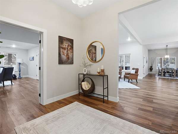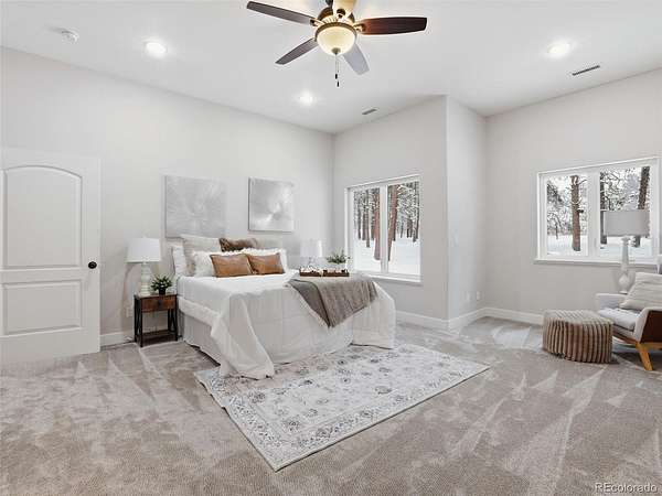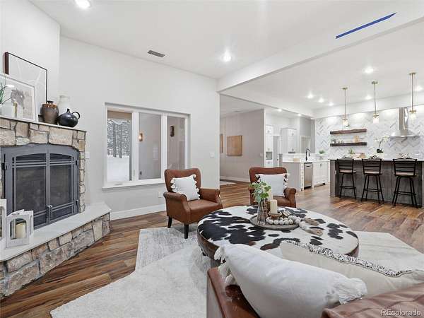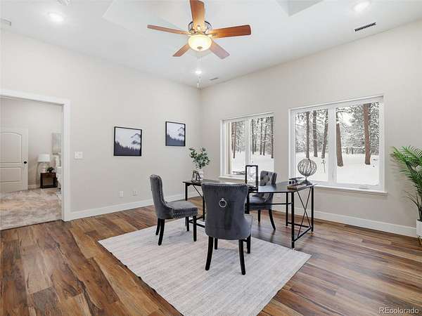 Completely remodeled and offering exceptional space and flexibility, this stunning home in the desirable Black Forest sits on 2.04 private acres and features an impressive 5,990 square feet, 7 bedrooms, and 5 bathrooms. Inside, the home has been thoughtfully updated with new LVP flooring throughout the main living areas and plush brand-new carpet in all bedrooms, creating a fresh and modern feel throughout. The expansive floor plan offers incredible versatility with multiple living spaces, including a secondary living room complete with a wet bar, making it an ideal space for entertaining guests or relaxing. The gourmet kitchen features a modern backsplash and offers the perfect space for cooking and gathering. Just off the primary bedroom is a private office with its own exterior entrance, making it an excellent setup for a home business, studio, or private workspace. A 1,142 sq ft attic conversion adds even more usable space and is ideal for a home theater, game room, or entertainment area, providing the perfect setting for movie nights or gatherings. Step outside to enjoy the peaceful acreage from the covered patio featuring a hot tub, creating the perfect outdoor retreat to relax and take in the quiet surroundings. The property also includes a 1,737 sq ft RV garage/outbuilding, providing ample space for RV storage, vehicles, workshops, or recreational equipment. The structure is pre-framed for an easy conversion into a secondary unit, presenting a unique opportunity for a guest house, rental income, or private living quarters. Enjoy the peaceful setting of Black Forest while still being conveniently located just minutes from Fox Run Park, offering miles of trails, open space, and outdoor recreation. With acreage, extensive updates, and exceptional flexibility, this property is a rare opportunity in a highly desirable location.