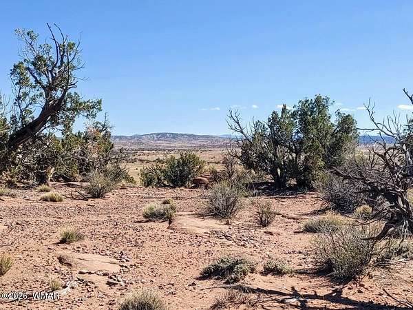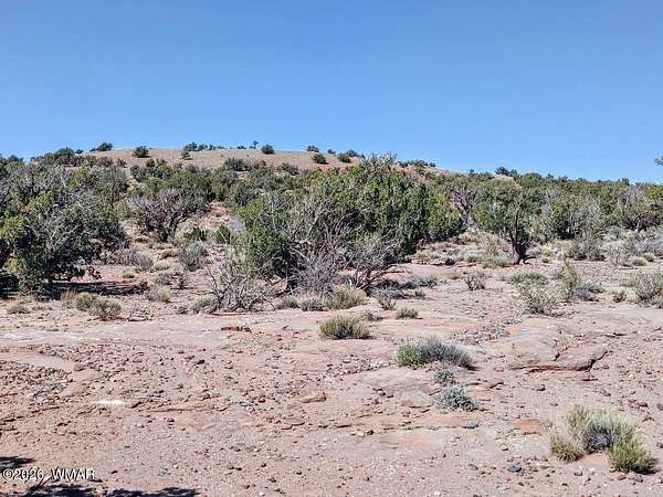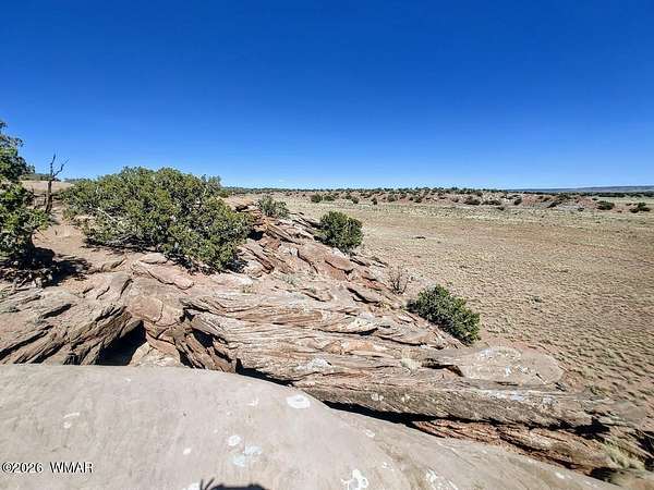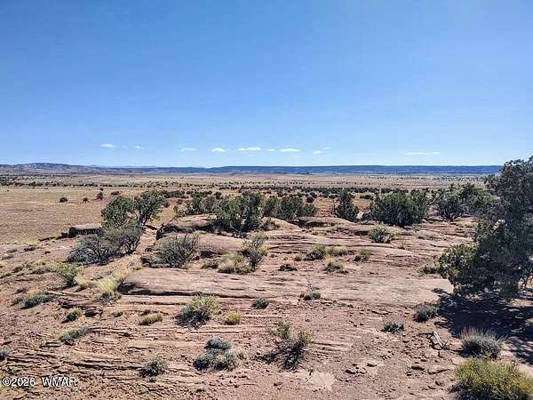 This 37-acre property in Concho, AZ, offers a diverse high-desert landscape featuring rolling hills, valleys, and level building sites. Set at an elevation of approximately 5,700 feet, the land is wooded with Juniper and Pinon trees and characterized by unique rock formations and expansive panoramic views. High clearance vehicles recommended.