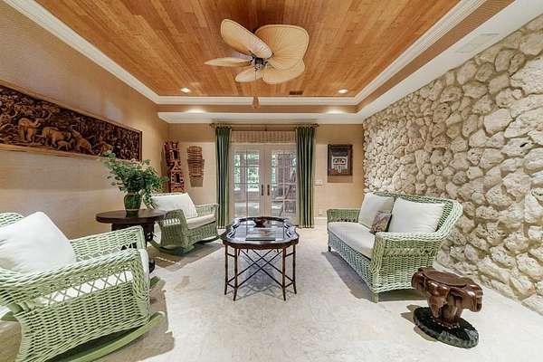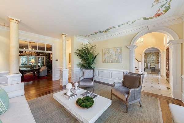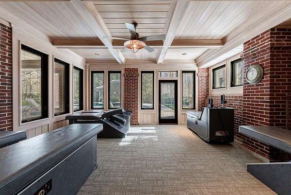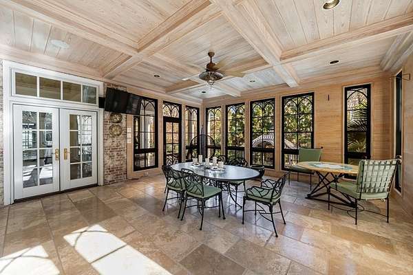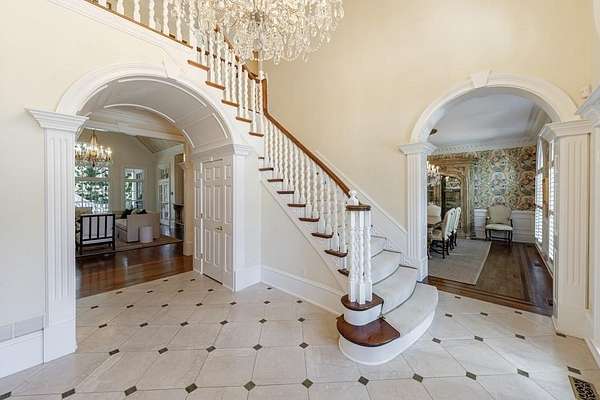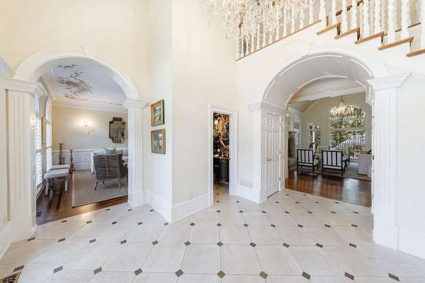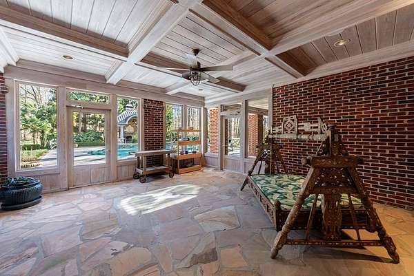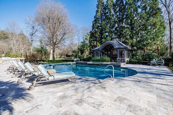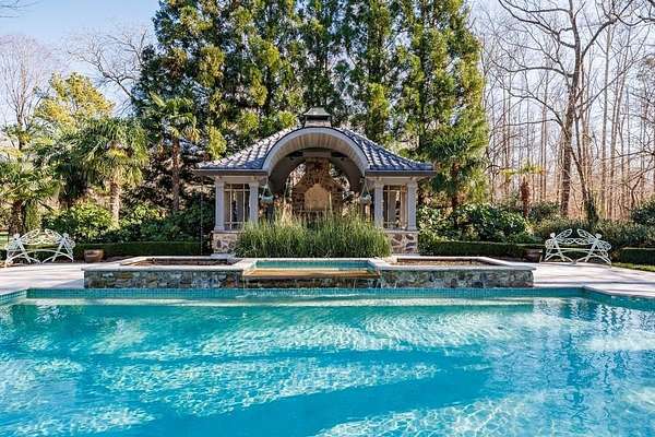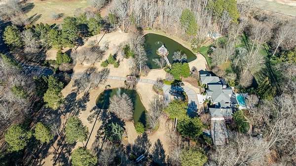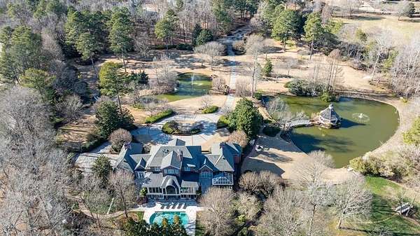Truly a one-of-a-kind estate set within an exclusive gated enclave of just a few homes. A private gated entrance opens to a long, sweeping driveway framed by a rolling front lawn, twin ponds-one on each side-and a charming gazebo. The circular drive leads to a stately columned front porch and striking double doors. Inside, a grand foyer welcomes you with beautiful stone flooring and exquisite crown molding. The main level features expansive living spaces designed for effortless entertaining. Formal living and dining rooms anchor the front of the home, while the kitchen opens seamlessly to the breakfast room and great room with fireplace. A richly appointed wood-paneled study showcases custom built-in bookcases and its own fireplace. The most captivating spaces are the two rear rooms overlooking the grounds and pool: one a glass-enclosed sunroom filled with natural light, the other mirroring its design as a screened retreat-both ideal extensions of the great room and kitchen for entertaining and relaxation. The primary suite, occupying the entire left wing of the home, is a private sanctuary featuring a gracious sitting room and direct access to the indoor pool. The suite boasts a tray ceiling, fireplace, and a spacious bath with serene views of the pond and gazebo. Two separate walk-in closets offer exceptional storage, complemented by dual vanities, a large shower, soaking tub, and two water closets. The upper level offers three generously sized bedrooms, each with an en-suite bath, along with a large bonus room currently used as a media room. A secondary staircase provides convenient access to the kitchen and garage. The finished terrace level is ideal for entertaining, with multiple living areas and a kitchen opening to the pool and grounds. A full wellness center includes a sauna, pool bath, exercise room, and massage room. Outdoors, enjoy the poolside covered gazebo with fireplace. Spanning over 21 acres, the property also includes two ponds, multiple gazebos, a shed, and a detached two-car garage. Offering exceptional privacy while located just 15 minutes from downtown Alpharetta and close to Milton, this extraordinary estate is truly a must-see.