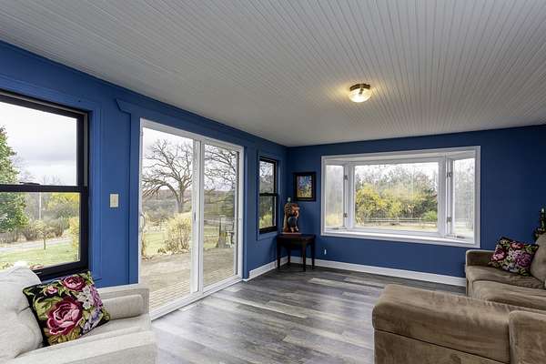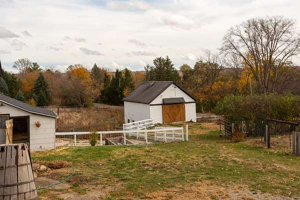 Step into timeless elegance with this 3- to 4-bedroom farmhouse on an 8-acre farmette perched on a scenic hill, delivering stunning vistas from every angle throughout the seasons. Situated at Route 120 and Thompson Road, mere minutes from Woodstock's charming historic downtown, this A1-zoned property offers the unique opportunity to live and work in one place, with income-generating potential built-in. Take advantage of over 6 acres of open pasture for your horses or farm animals, a expansive shared garden for fresh produce, and plentiful parking for gatherings or events.