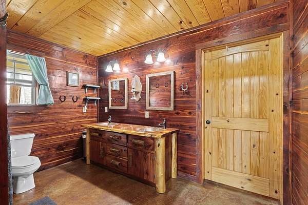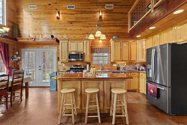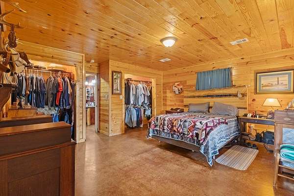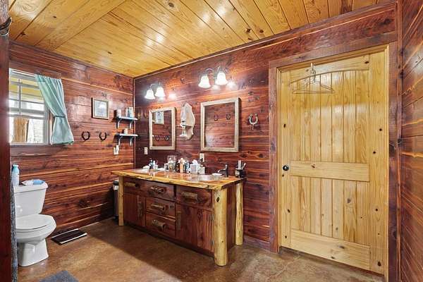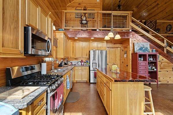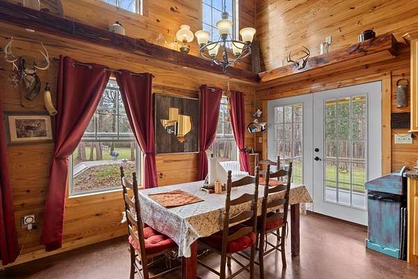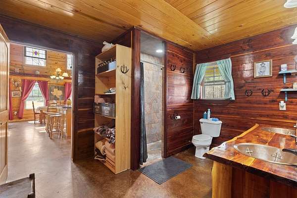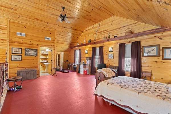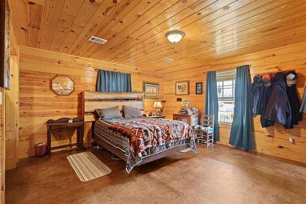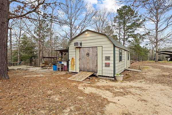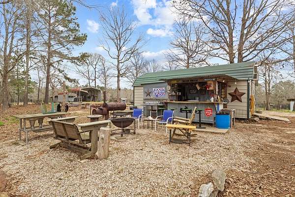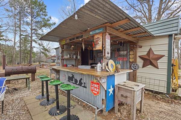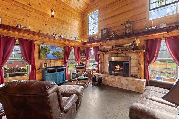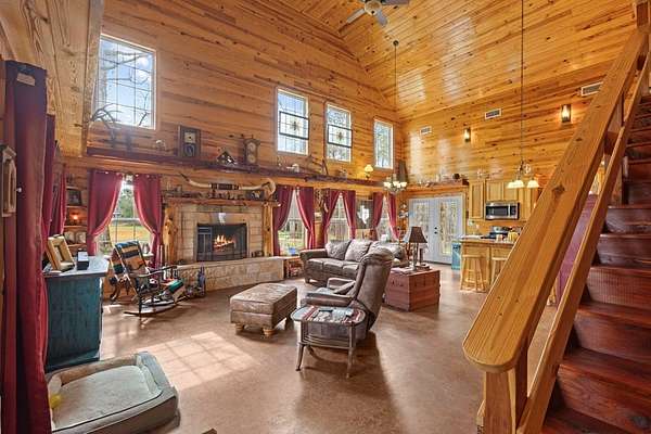 Escape to peaceful country living with this beautiful custom 2-bedroom, 2-bath cabin nestled on 21+ unrestricted acres. This charming home features a warm & inviting interior highlighted by a wood-burning fireplace, creating the perfect rustic retreat. Enjoy relaxing mornings on the covered front porch & quiet evenings on the covered back porch overlooking the scenic property. Designed with country living in mind, the land is fenced and ready for livestock & includes horse pens & stables, making it ideal for equestrian enthusiasts or anyone looking to raise animals. A deep water well services the property, & multiple outbuildings provide ample space for equipment, storage, or workshop use. Entertain family & friends in the outdoor kitchen & gathering area, perfect for hosting under the open sky. With wide open space, privacy, and endless possibilities, this versatile property offers the ideal blend of comfort, functionality, and rural charm.