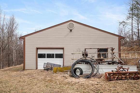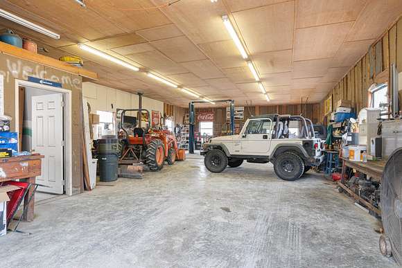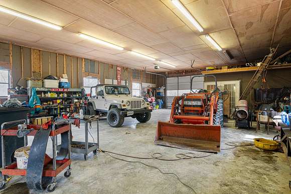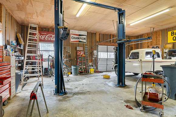 More than just land; it's a lifestyle. Nestled amidst rolling hills and trees, this property is a haven for nature lovers and car enthusiasts, with room to expand! For the car aficionados, the garage is nothing short of paradise. The garage is designed to help you maintain and accommodate your prized collection. Whether you're tuning up a classic car or detailing a new sports model, this space caters to your automotive needs. The rotary lift does convey. Don't miss the pond located down the hillside, reflecting the sky like a natural mirror and attracting various wildlife. So many possibilities!