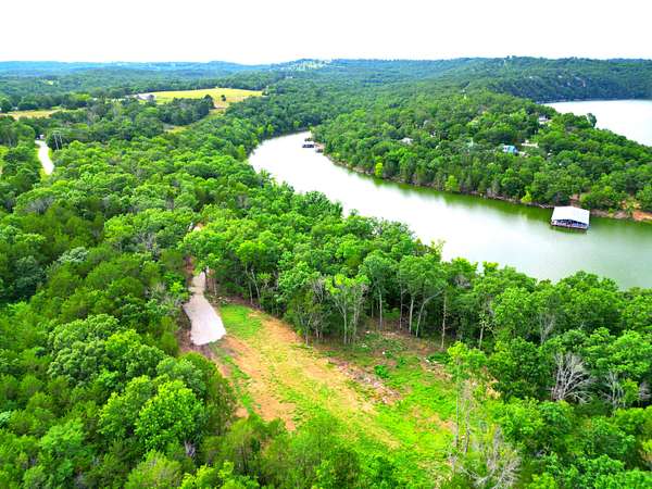 No restrictions on this 9.7 Acres. Has 1,400+/- feet of Table Rock Lake Frontage and Wooley Creek Road Frontage. This 9.7 Acres is already divided into two parcels (5.9 Acres and 3.8 Acres with Wooley Creek Road running through and dividing the property into the two parcels) . There are Multiple Building Sites on both parcels! Lots of wildlife; turkeys, deer and Bald Eagles have been spotted! Sellers have done a lot of the work for you with a road put in and a cleared building site within a short walking distance to the lake. Must see to really appreciate this beautiful lake front property and the opportunities it offers in either building the lake house of your dreams or developing into something more.