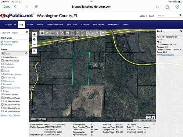 Great opportunity to own 20 acres with lots of privacy. You'll be nicely tucked away, yet close enough to I-10 and other desired conveniences to make this the perfect location to build a nice primary home, or cozy getaway. The owner states the property has a recorded easement from Works Rd, but this entrance is overgrown and very difficult to access. The property has not been cleared. Please use extreme caution when viewing. Bug spray is strongly recommended and especially tick repellant. Must not walk this property without first contacting the agent either directly, or through your own agent. More information can be found through Washington County Appraisers Office. Buyer to verify any and all information regarding this property as they see fit.