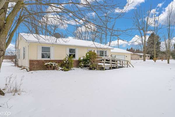 Looking for a ranch home on acreage in Croswell, Michigan under $250K? This is the one buyers have been waiting for. Situated on 5 beautiful acres in the desirable Croswell-Lexington School District, 5840 Mortimer Line Rd offers 1,112 square feet of comfortable single-level living with room to grow, roam, and breathe. Built in 1980, this well-maintained 3-bedroom, 1-bath ranch features newer roof, newer furnace, and updated windows, giving buyers confidence in the big-ticket items. The spacious kitchen opens to a rear deck overlooking the property, creating the perfect setting for morning coffee, summer BBQs, or peaceful sunset views over your own acreage. The living room is bright and inviting with large windows that bring in natural light and showcase the quiet country surroundings. The attached 2-car garage adds everyday convenience, while the LP gas forced air furnace is already prepped for central air. The home sits on a crawl space and operates on well and septic, offering independence and no HOA restrictions. The 5-acre parcel provides endless potential. Hobby farm. Gardening. Recreational land. Future outbuilding. Or simply space and privacy. Located just minutes from downtown Croswell, local shopping, and a short drive to Lexington and Lake Huron's waterfront, this property blends rural tranquility with access to amenities.
