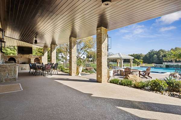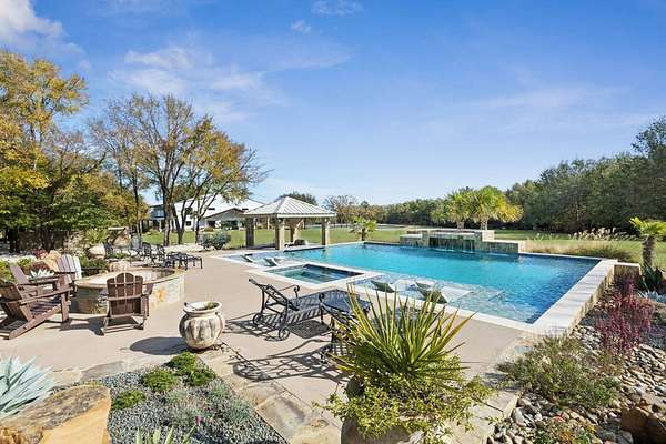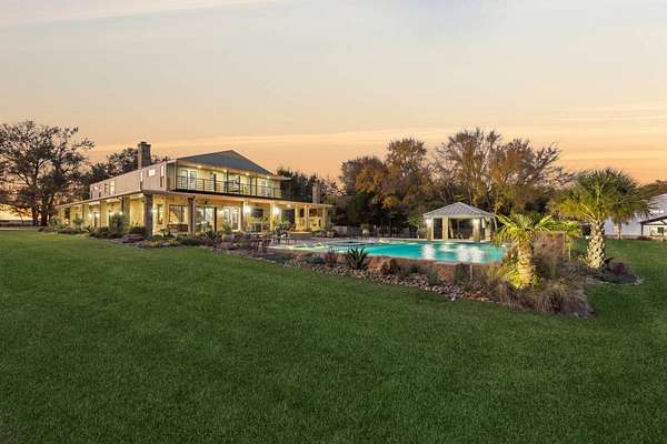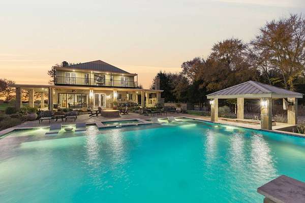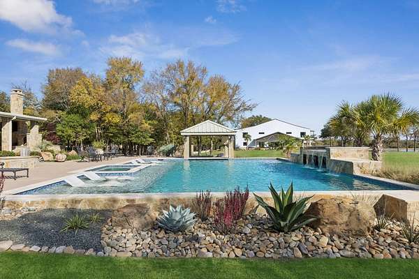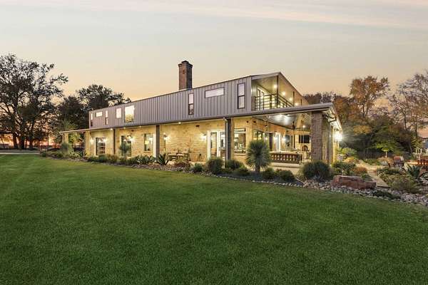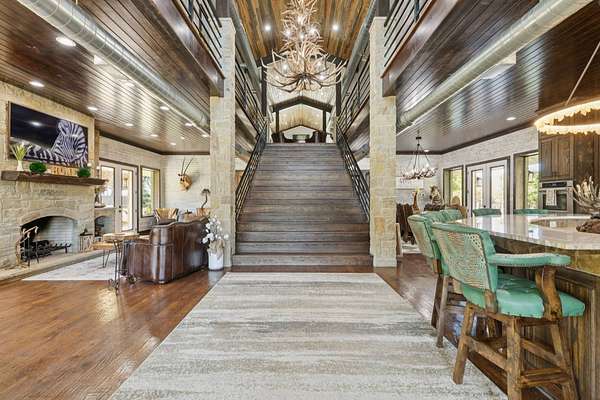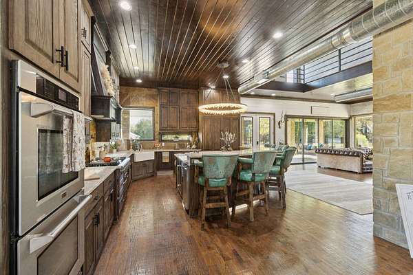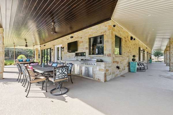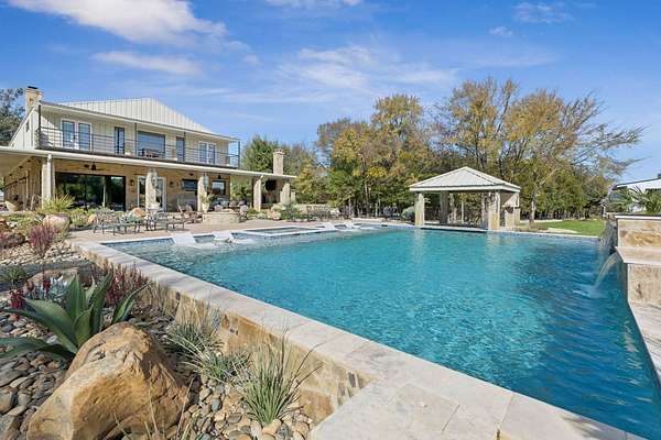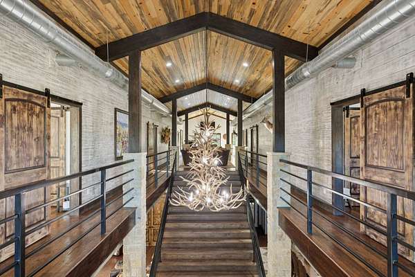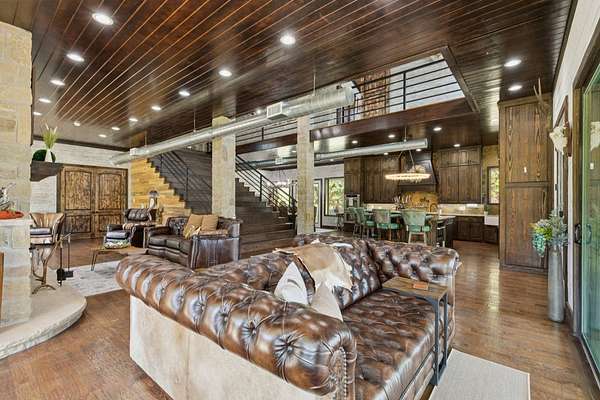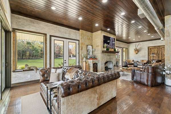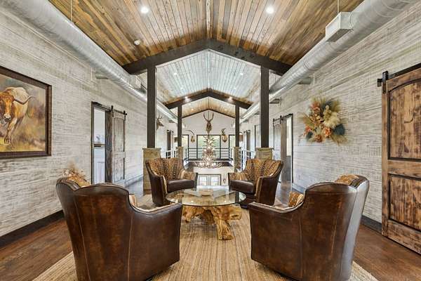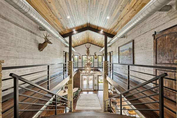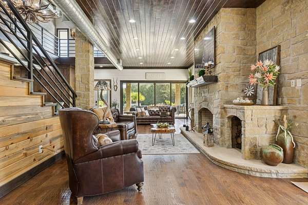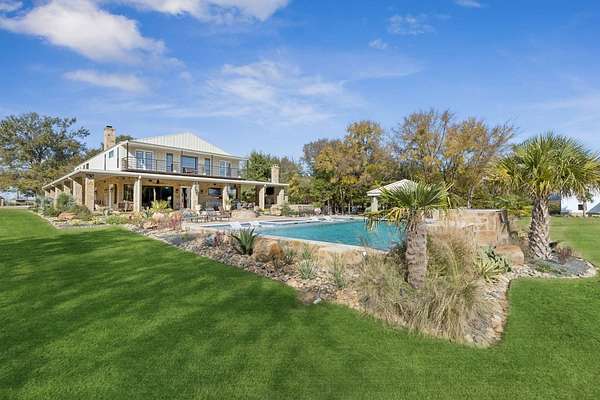 Introducing WEBB BRANCH RANCH, one of Texas's premier wildlife ranches-a dream property that captures the magic of Hill Country design in Central Tx! The primary residence is a stunning custom metal home with stone accents that redefine luxury, complemented by a second custom metal hunting lodge-venue situated on this private wooded acreage. The lodge serves hunters, hosts events, and offers Airbnb potential. Built with passion, purpose, and uncompromising quality, this property offers incredible versatility in a secluded, prestigious location, perfect for wildlife enthusiasts, hunters, and guests alike. The main residence blends timeless elegance with modern sophistication, elite craftsmanship and extensive amenities. Expansive windows and wraparound porches frame panoramic views of the land and abundant wildlife, ensuring privacy. Outdoors enjoy 5 star resort style living with the covered outdoor kitchen, rock FP, dining space or lounge on the spacious sun deck in the heated/cooled pool while enjoying a beverage from the swim up bar. Relax by the gas firepit and allow the sounds of the pool waterfalls to take you away. The hunting lodge-venue was built in 2024. It is 4800 sq ft +/- and offers its own private entry gate, a spacious ballroom, a chef-level kitchen, upstairs private retreats and spa inspired bathrooms for resort level living. The formal and casual living areas are designed for effortless hosting and entertaining. The wall of windows and glass doors offer exspansive, serene views of the exotic wildlife roaming, the meticulously manicured grounds and the views of the lake with fountain. This entire ranch is backed up by generators. The front pasture is divided into 4 deer camps. This prestigious ranch offers complete high fencing and lots of heavy woods for wildlife cover. A true hunter's dream.