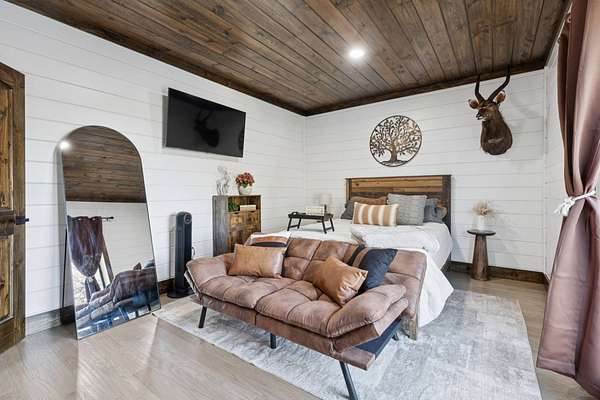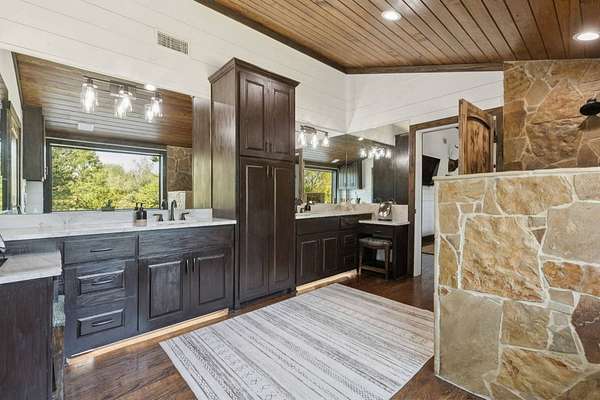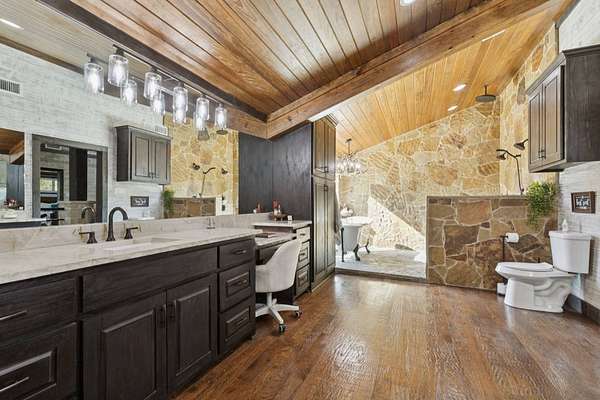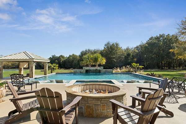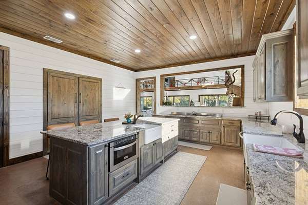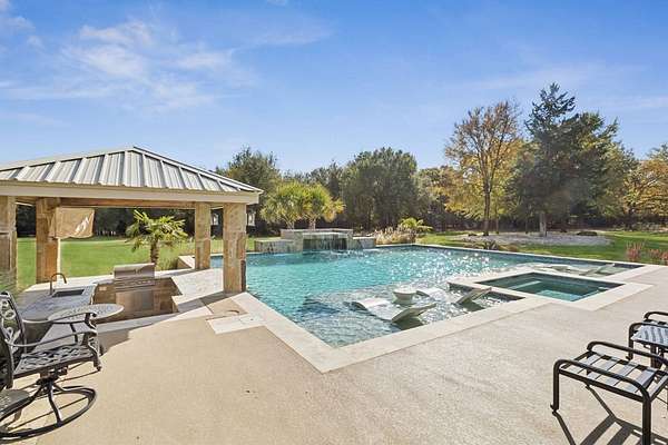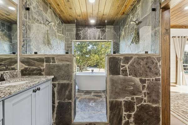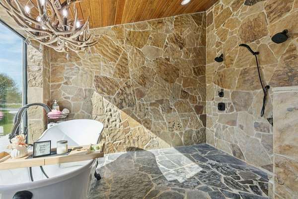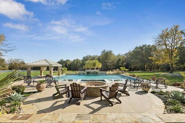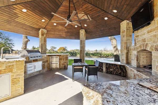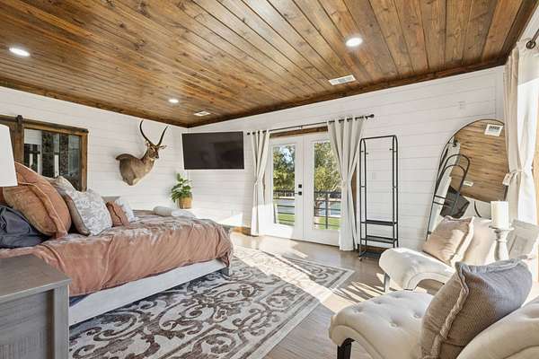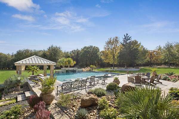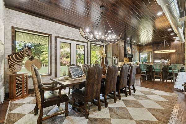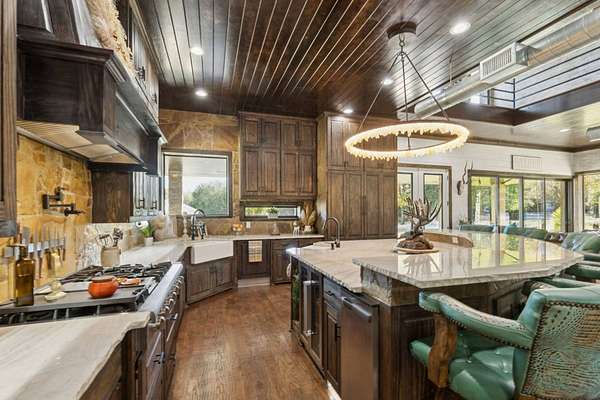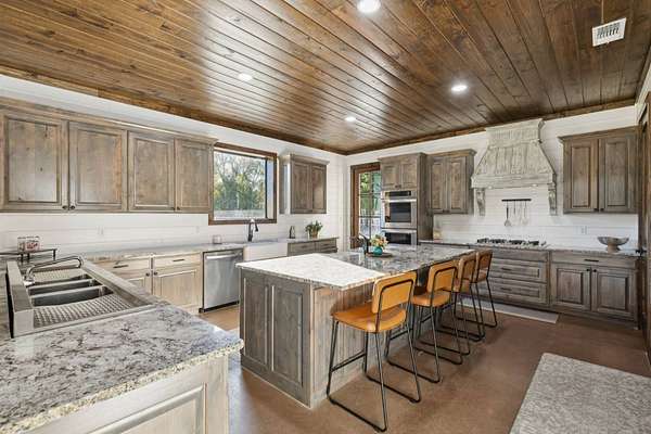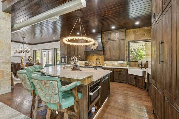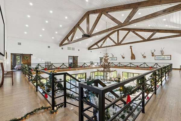 Introducing WEBB BRANCH RANCH, one of Texas's premier wildlife ranches-a dream property that captures the magic of Hill Country design in Central Tx! The primary residence is a stunning custom metal home with stone accents that redefine luxury, complemented by a second custom metal hunting lodge-venue situated on this private wooded acreage. The lodge serves hunters, hosts events, and offers Airbnb potential. Built with passion, purpose, and uncompromising quality, this property offers incredible versatility in a secluded, prestigious location, perfect for wildlife enthusiasts, hunters, and guests alike. The main residence blends timeless elegance with modern sophistication, elite craftsmanship and extensive amenities. Expansive windows and wraparound porches frame panoramic views of the land and abundant wildlife, ensuring privacy. Outdoors enjoy 5 star resort style living with the covered outdoor kitchen, rock FP, dining space or lounge on the spacious sun deck in the heated/cooled pool while enjoying a beverage from the swim up bar. Relax by the gas firepit and allow the sounds of the pool waterfalls to take you away. The hunting lodge-venue was built in 2024. It is 4800 sq ft +/- and offers its own private entry gate, a spacious ballroom, a chef-level kitchen, upstairs private retreats and spa inspired bathrooms for resort level living. The formal and casual living areas are designed for effortless hosting and entertaining. The wall of windows and glass doors offer exspansive, serene views of the exotic wildlife roaming, the meticulously manicured grounds and the views of the lake with fountain. This entire ranch is backed up by generators. The front pasture is divided into 4 deer camps. This prestigious ranch offers complete high fencing and lots of heavy woods for wildlife cover. A true hunter's dream.
