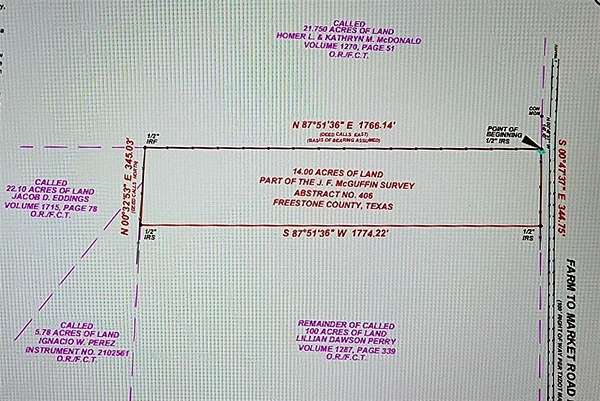 Est $1,375/moGREAT LOCATION FOR 14 ACRES IN FREESTONE COUNTY! This 14 acres has been surveyed out of 100 acres. Build your custom Dream Home or install your Manufactured Home where you can gaze at the wide open sky and star filled nights while your horses, goats or cattle are under your watch in the pasture. Great Pastureland for cattle grazing or dig a tank and set up your tree farm! Water is nearby, electricity is nearby - Buyer to confirm utility costs with Pt Enterprise Water Supply and Navarro County Co-Op. Buyer must erect a cross fence within 60 days of Closing. Seller to retain Mineral Rights.