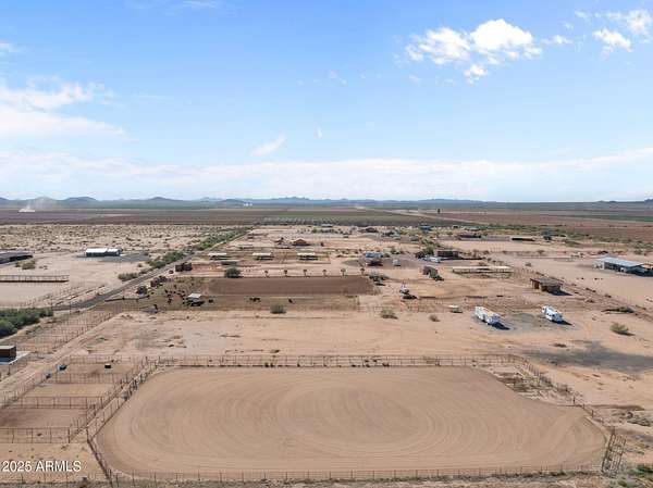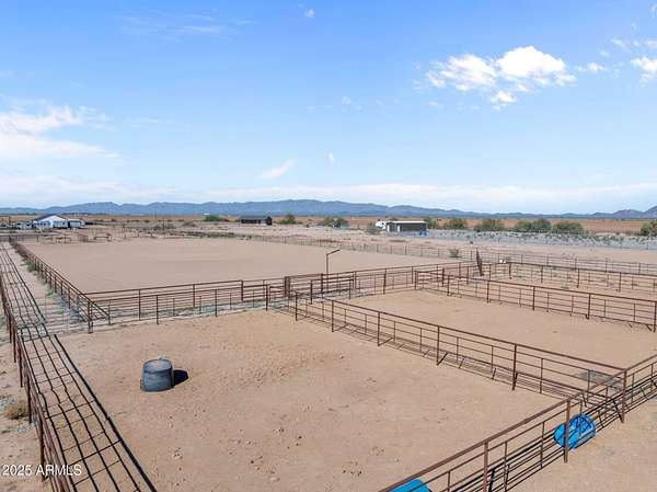 Fully fenced and gated with durable piped fencing around the perimeter, this property is ready for serious horse enthusiasts! Featuring a finished 180x300 arena with hauled-in sand, a 10-ft return alley, and a full professional setup for roping or training. Enjoy 13 (30x40) pipe pens, 4 (60x40) large turnout pens, and 4 (20x20) smaller pens -- all designed for optimal horse comfort and management. A 20-ft Conex/tack room is airtight and sits on 25 yards of concrete, complete with a hitching rail for saddling and tying horses. Water is ran throughout the property, ensuring convenience for livestock and RV users alike. There are 4 RV hookups with water, plus a solar panel system that conveys with the sale. RV available for purchase as well CC&Rs are in place to maintain the quality and integrity of the surrounding neighborhood. Whether you're looking to build your dream home or create a top-notch horse training setup, this property is ready to go!