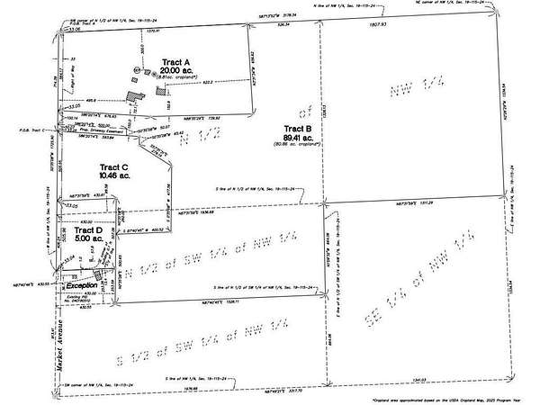 Est $8,314/mo99.87 acre land parcel with one home building entitlement. 80.86 acres of productive farmland with a CPI of 76.3. In addition to the cropland, there is a mix of woods, grass, and wetland that will fit both investment and recreational desires. Many options for new home locations and no builder restriction.