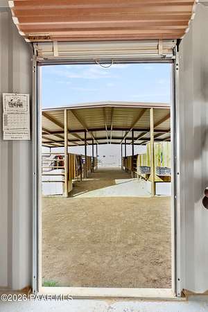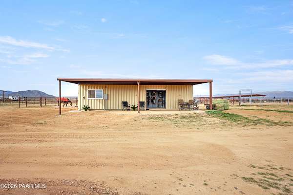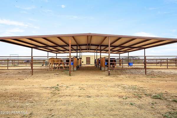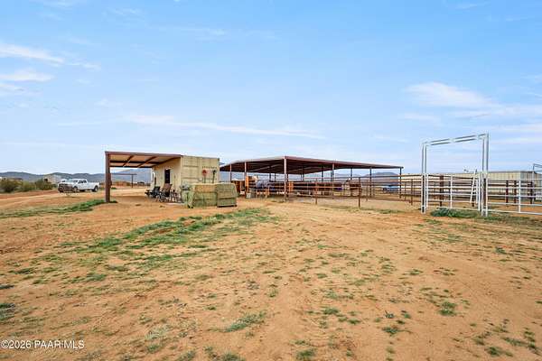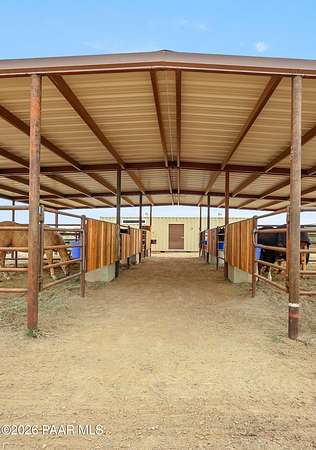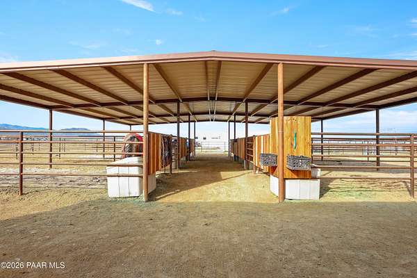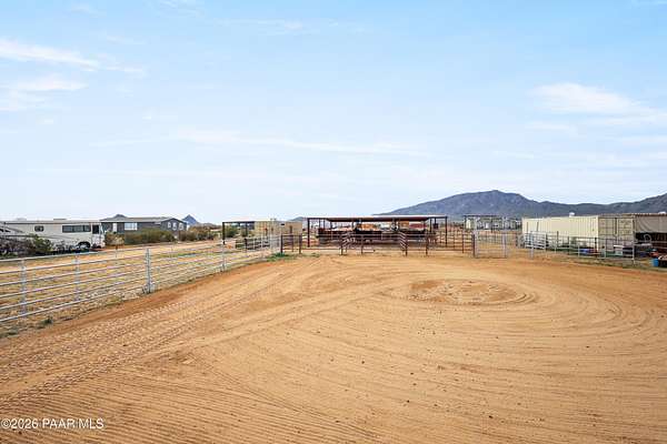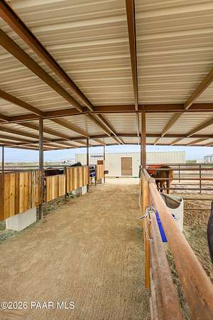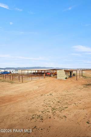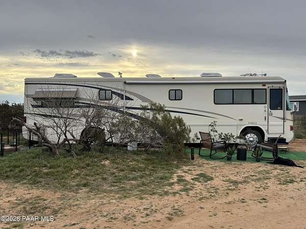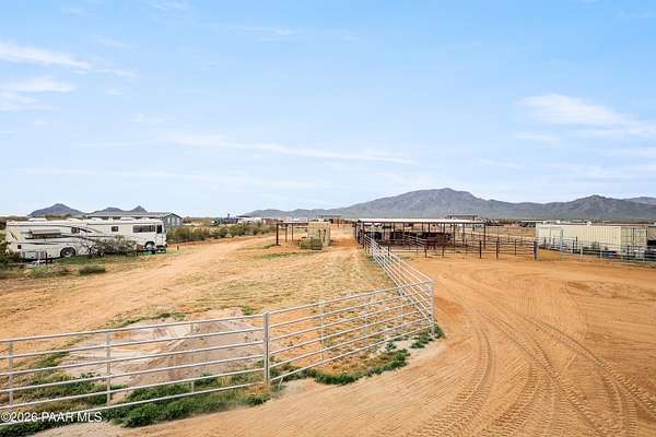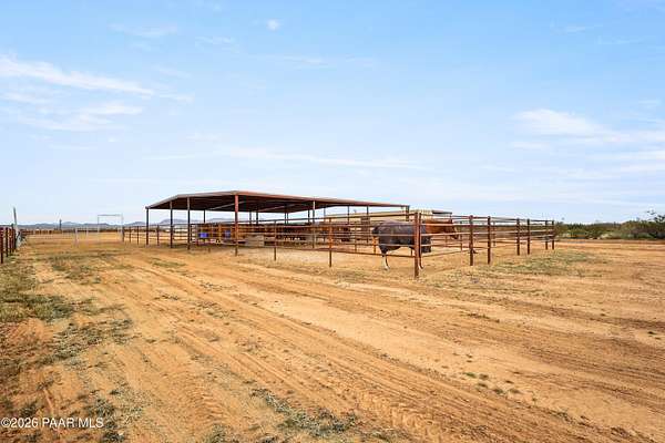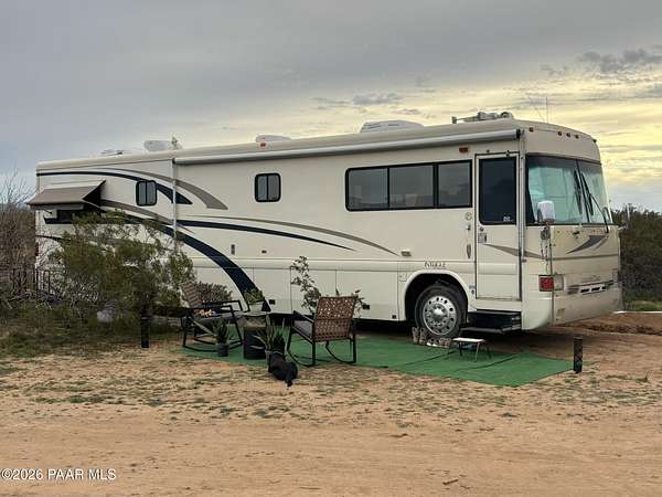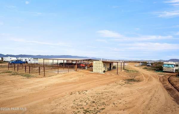 Check out this amazing 4-acre horse property!! Come build your dream home! Horse facility is already built and ready to go! Full sized 150' x 300' arena with mortar sand and no rocks! A 6-stall mare motel with 15' x 20' stalls that have 30' runs attached. Also includes a 40' Conex Box Tack/Storage Room! There is also a 2000 40' Country Coach Intrigue Motor Home that will convey with the property if it sells at full asking price. 50-Amp power has already been run to the Conex and RV. Has a 1/4 share of the 700' well assigned to the parcel. Aguila Water Company is scheduled and ready to come out to finish hooking up the water. Prime location that is located within a short riding distance of Sharp Veterinary Services, Silver Bit Arena, and acres of public land! There are acres of usable, flat
