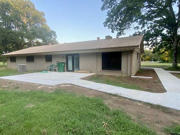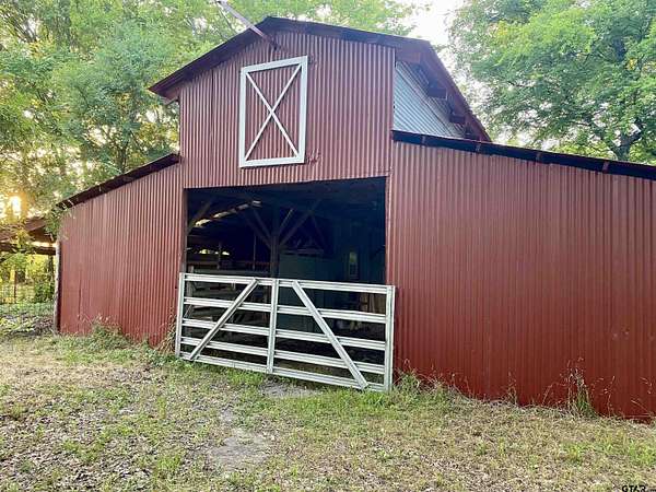 Appox 1 mile from Lake Fork! This 8 acre private ranch is an oasis with everything you could possibly ask for! Enter 1000ft frontage of beautiful white pipe iron fencing w/security gate. Travel down a long Crape Myrtle tree lined concrete drive to home with high end energy efficient windows w/unobstructed views of farmland, Metal roof and Solar panels to reduce energy costs. You get a 2 bay 1200SF metal garage w/AC, frig, workshop area, ceiling fans special deco walls/ceiling and a back carport w/metal beam supports for extra parking. The 1088sf red 2 story barn with upstairs hay loft, corrals/shoot,2 tack rooms w/electricity access to both manicured pastures and beautiful trees. The 2-Story guest house has full kitchen w/frig, 2 new window units, a bathroom with shower, 700sf large living area w/2 bedrooms, new deck in back overlooks the pond full of fish, off of the front covered porch step over into a gunite in- ground pool(buyers choice to restore) Main house has new kitchen, appliances, cabinets, marble island, light fixtures. 2nd living area can be a 4th bedroom. Master bedroom has huge tiled walk-in shower w/seating. 2 additl storage buildings, new hot water heater. Approx 20 yrs savings to your electric bill left on solar panels(owned). Buyer to obtain own survey. Foundation repairs have warrenty.
