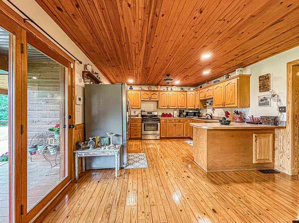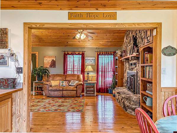 Discover your own slice of paradise with this stunning 50-acre m/l property, perfectly blending rural charm with modern comforts. Nestled just under 5 miles from town, you can enjoy the best of both worlds-the serenity of rural life and the convenience of nearby amenities. With 50 acres m/l of lush land, this property is ideal for farming, gardening, or recreational activities. The property is fully fenced and cross-fenced, has a pond, a freeze proof cattle waterer and corral and a year-round spring. The 40x50 barn and additional workshop are perfect for the hobbyist or farmer. The charming 3-bedroom, 2-bathroom home boasts a warm, welcoming atmosphere with pine floors, doors and trim to enhance the rustic charm. Also included are walk-in closet, energy efficient windows, and a whole-house generator.