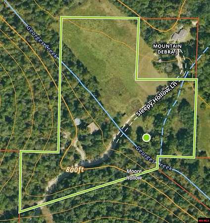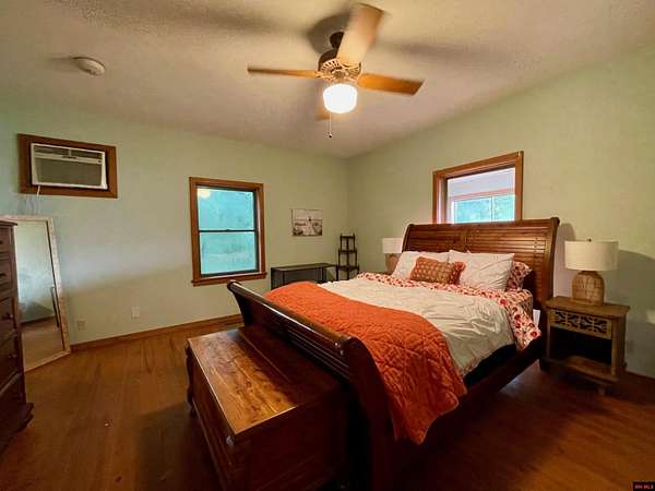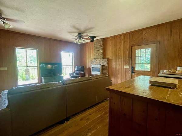 Est $1,386/moWelcome home to your Ozark oasis on the beautiful George's Creek! This property boasts 10.56 unrestricted acres m/l, a mix of pasture and wooded areas. The home overlooks George's Creek with beautiful views of abundant wildlife. This two bedroom one bath home has 1588 sf, custom tongue and groove wood walls and beautiful pine floors. There is a 20 x 30 shop building with concrete floor, 3 storage sheds, and also a she-shed ready for your imagination!