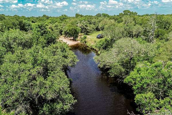 Introducing a rare opportunity: 471.46 acres of scenic, productive ranch land just East of Fordtran and North of Victoria, spanning Victoria and DeWitt Counties. With paved frontage on both FM 682 (3,736 ft) and Hwy 77 (2,026 ft), this legacy property offers an exceptional blend of accessibility, water, wildlife, and heritage-rich terrain. Dual paved road frontage enhances both access and long-term development value. The ranch is a mix of gently rolling terrain and level pasture with sandy loam soils ideal for cattle grazing and water retention. Towering live oaks, pecans, cedar elm, mesquite, and hackberry populate the landscape, while South Texas brush and native grasses provide natural forage and shade. Elevation rises offer multiple potential homesites or scenic overlooks. The east side features a 2.49 acre pond that has held reliably during drought, along with multiple caliche pits that retain water and attract wildlife. Chocolate Creek-a seasonal wet-weather draw-runs approximately 2,184 ft along the northern boundary, complemented by 4,500 ft of additional drainage for potential pond/lake development. A 111' deep well (20 GPM, pump hung at 50' as per the water well report log) services the property, with electricity already in place. Roughly 92 acres lie within the floodplain, supporting diverse habitat and future wetland potential. The ranch is loaded with native wildlife, including whitetail deer, Rio Grande turkey, dove, quail, ducks, wild hogs, and varmints. Multiple blinds and feeders are already in place across a well-maintained trail and sendero system. Water, cover, and forage combine to offer excellent year-round hunting and recreational appeal. Perimeter fencing is in fair to good condition. Interior roads consist of compacted dirt and grass, suitable for trucks, ATVs, and UTVs. A small hunter's cabin (no value assigned) sits near the center and could serve as a weekend base or future homesite. The land is not currently leased; cattle are owned by the seller. The property carries an active agricultural exemption and is offered with surface rights only. With rich soils, live oak groves, water infrastructure, and unmatched accessibility, this ranch offers something for every buyer-be it working cattle ranchers, recreational users, or legacy investors. Its history of multigenerational stewardship and location between two thriving South Texas counties positions it as a rare and meaningful acquisition. Positioned in a prime corridor between Yoakum (21 mi), Victoria (19.5 mi), and Cuero (24 mi), the ranch is also convenient to Houston (131 mi), Austin (113 mi), and San Antonio (121 mi). Victoria Regional Airport is just 22 miles away, with municipal airports in nearby towns.