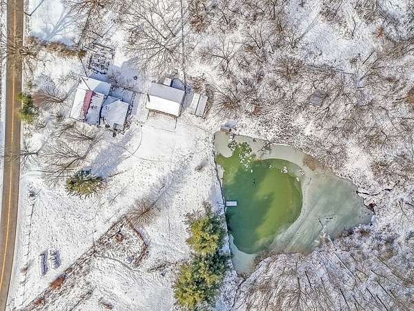 Stocked pond with bass, bluegill, catfish, and duck shed