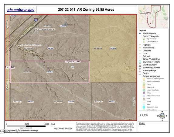 Est $773/moElectricity available! 36.95 acre parcel with prime access to Frontage Rd along Interstate-40. The Mohave County General Plan overlay for this area is light industrial which gives the owner lots of opportunity. Borders over 500 acres of government land. No HOA. Area of shallow wells!