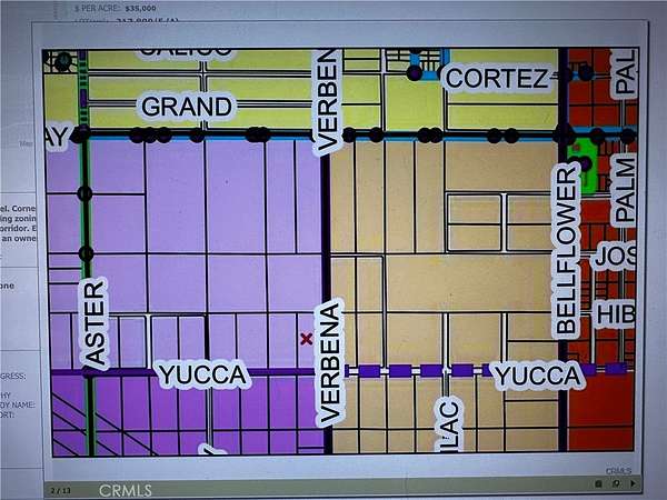 " THE GREEEN ZONE" ZONED LM A nearly 5 acre south facing corner parcel in a designated light manufacturing/ light industrial zone, with potential for cannabis related business. ( pending due diligence on zoning and permits ). The land is mostly flat , south-facing and has power lines running in front. It's located in a developing industrial area likely near the planned Brightline West bullet train route connecting Rancho Cucamonga, Hesperia, Apple Valley and Las Vegas along Interstate 15.- which could bring future economic growth and increased property value.