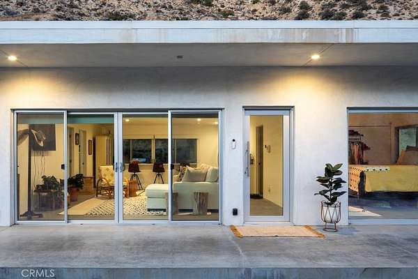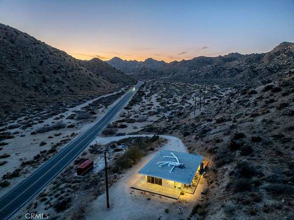 Gorgeous Mid-Century Home on 5 Acres With Phenomenal Location and Water Well! As you drive to this one-of-a-kind, 2 bedroom, 3 bathroom home, you're surrounded by breathtaking desert landscapes, boulder formations, and panoramic views. Pulling up the private driveway, you'll immediately notice the chic modern architecture, perfectly positioned against a stunning mountain filled with cacti and other desert flora. Before entering, you are greeted by, unobstructed views overlooking the valley that stretch as far as the eye can see.
