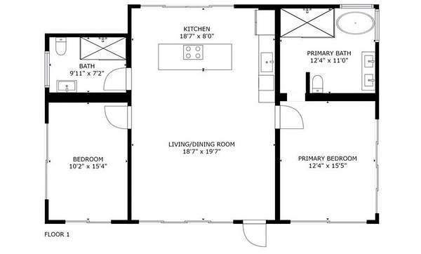 - Bathroom x 2, Bedroom x 2, Kitchen, Living Room