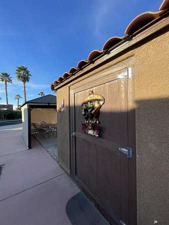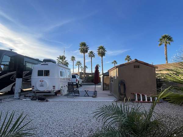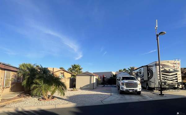 Est $710/moLovely fully improved west facing lot set up and ready to move on with a large RV; includes an 8' x 12' storage shed with stucco & tile roof. Gazebo included with blinds to utilize the sun or shade. Located in 55+ gated community where there are seasonal activities galore along with cafe/cabana. Relax around one of the two sparkling salt water swimming pools & enjoy a delicious meal with your favorite beverage. Close to clubhouse that also includes two hot tubs, fitness room, pickle ball/tennis, shuffleboard courts & so much more.