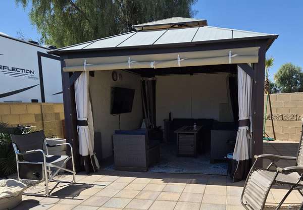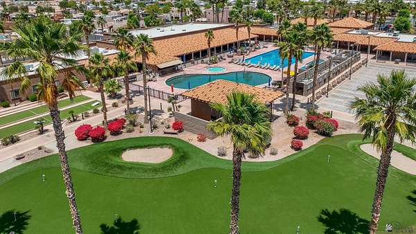 Est $541/moThis lovely east facing fully improved lot is ready to move on with a large RV; full hook-ups. Located in the 55+ Palms Resort where there are so many seasonal activities available including the ability to relax around one of the two sparkling salt water heated pools or hot tubs. Pickle Ball/Tennis courts, shuffleboard courts with stadium seating or table tennis; so much to enjoy. Amazing concerts & activities throughout the winter season. If you have are considering building a larger home, the lot next door (Lot 344) is also available.