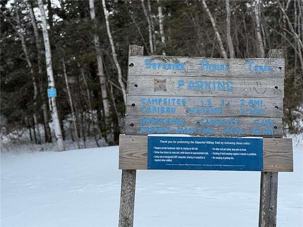 From Silver Bay, continue NE on Hwy 61 for approx. 18.5 miles. Turn left onto Sugarloaf Rd.. Continue for roughly 1.8 miles and turn left onto Zekes Rd. Go .6 miles and park at the turn around. From there, take the ATV trail for approx. 275 yards to the Southern property line.