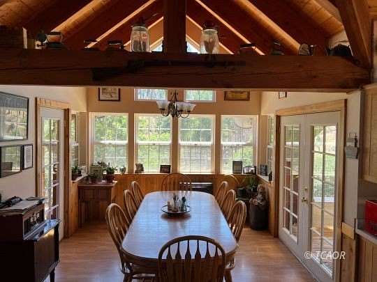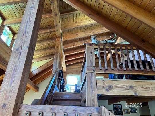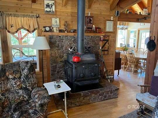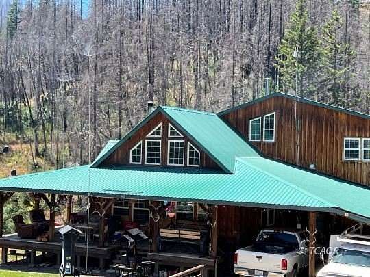 This TRUE HOMESTEAD PROPERTY IS COMPLETELY SURROUNDED BY NATIONAL FOREST LAND! This rare property Is BEHIND A LOCKED GATE and is surrounded by thousands of acres of National Forest to use for hunting, hiking, horseback riding and your homestead use. It is located at the end of a gated Forest Service Rd. with an exclusive easement running the last mile and a half. This 34-acre Federal Land Patent has two reliable wells, two ponds, two creeks, and natural springs. This cozy homestead is off grid and powered by solar and a backup generator. The luxurious custom-built open beam three-bedroom home includes hot tub and sauna, 900 square ft. of wrap around covered porches, and a 600 square ft. covered attached carport. A separate 1000 square ft. custom-built shop with an overhead hoist and a service pit is ready to accommodate any project. Also included is a barn, greenhouse, garden beds, fruit trees, and chicken and hog pen for your sustainable homestead. ENJOY THE SERENITY, THE WILDLIFE, ALL THIS ON YOUR OWN PRIVATE HUNTING CAMP OR SECLUDED FAMILY GET-A-WAY!