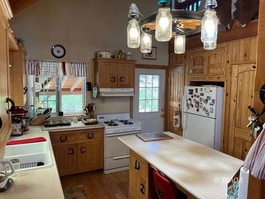 - Tile Laminate/Formica, Countertops Tile, Countertops Linoleum/Vinyl, Flooring Laminate, Flooring Hot Tub/Spa, Vaulted Ceilings, Walk-In Closet(s), Ceiling Fan(s), Wood Stove, Flooring