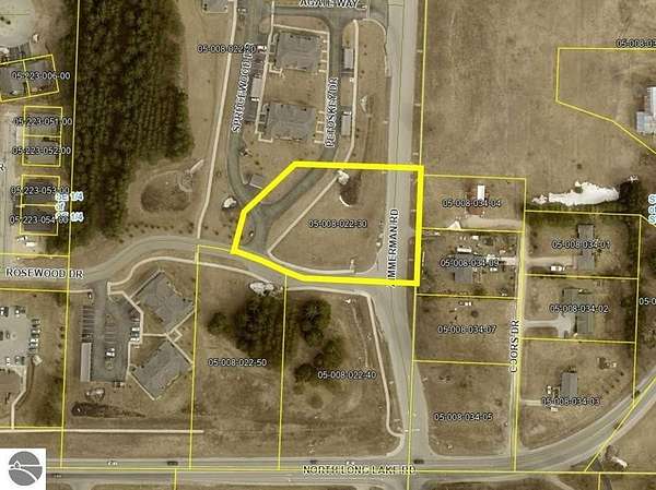 Est $1,153/moCommercial 1.5 acre parcel in great westside Traverse City location just north of the N. Long Lake Rd. intersection. Three miles west ofthe Munson Medical campus, a half mile east of West Senior High and close to downtown amenities. Many commercial uses areallowed including office, medical, service, restaurants, and certain retail uses. Multi-family possible with amendment to PUD. All utilitiesare available at the site including municipal water and sewer. Next to Brookside Commons apartments. Potential for Zimmerman Rdextension to Lone Tree/Harris Roads.