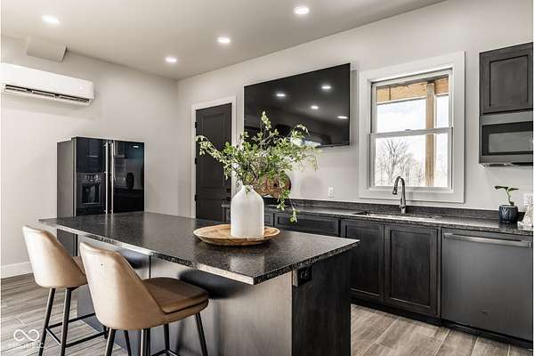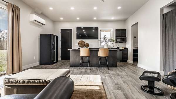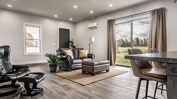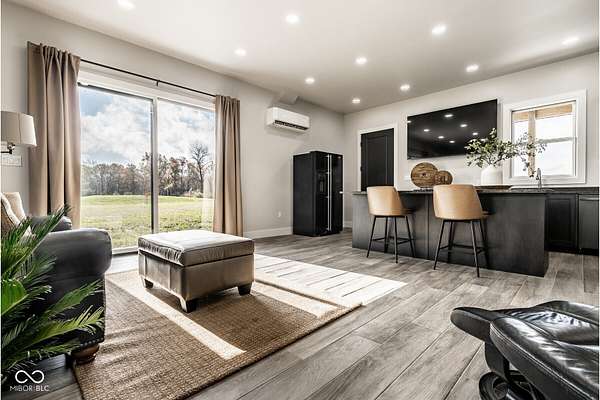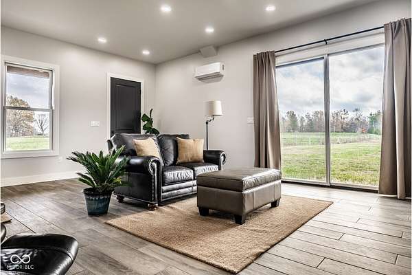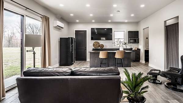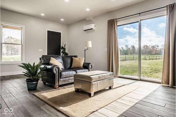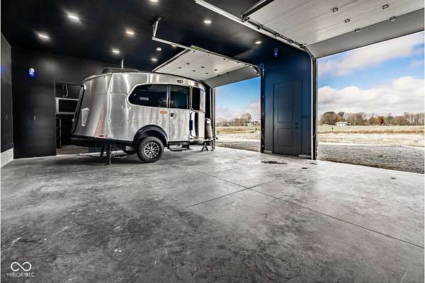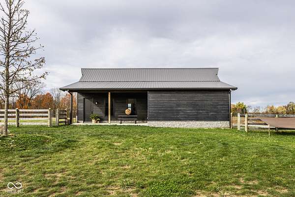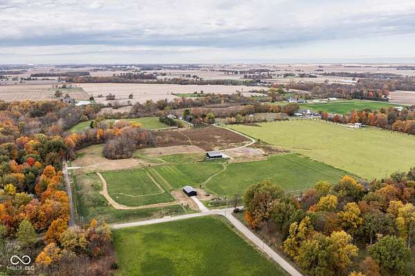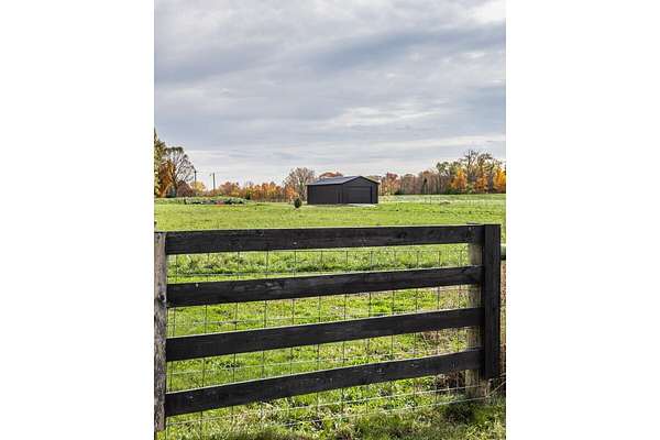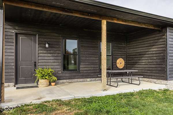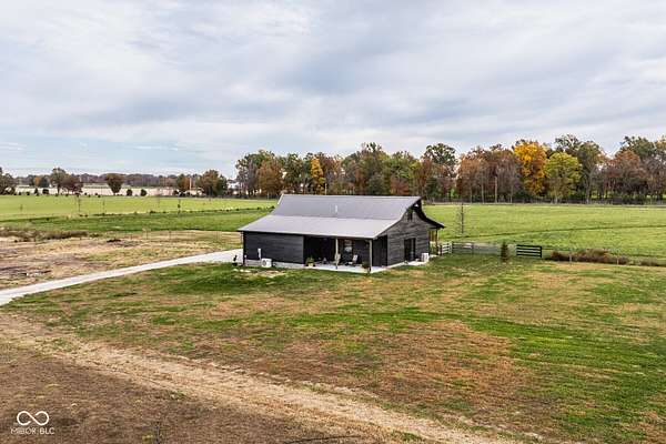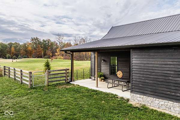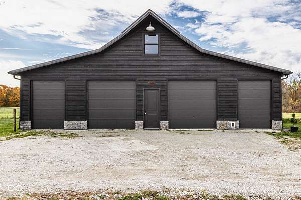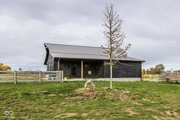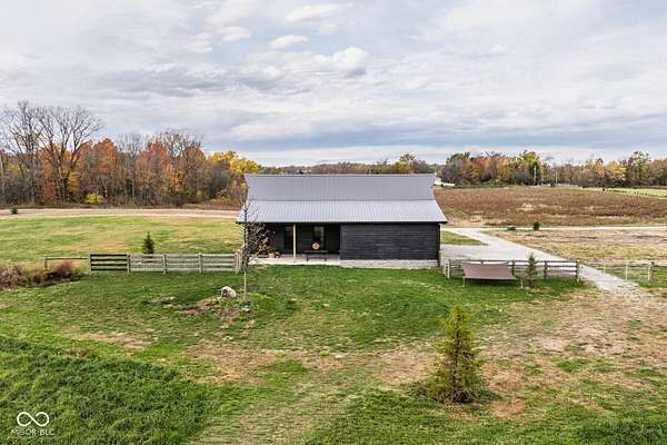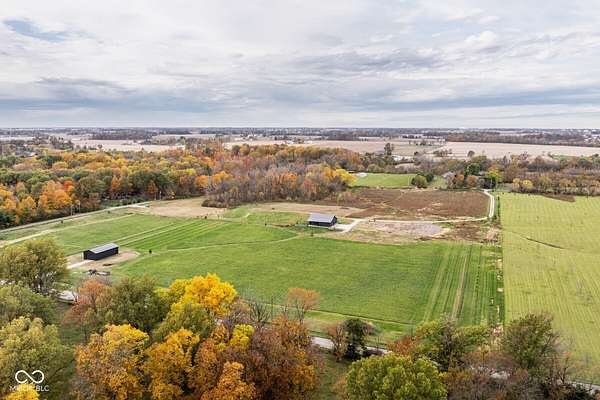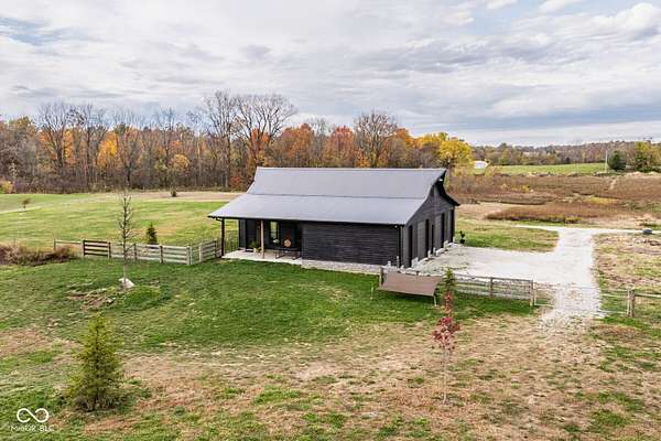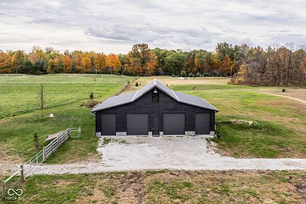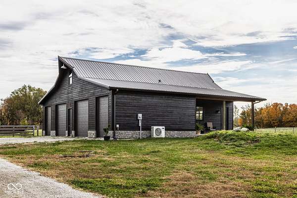 This exceptional 7-acre property in Zionsville offers a rare combination of functional acreage, modern living space, and premium improvements-plus the option to purchase 12 acres total. Thoughtfully planted with grass for horses and cattle, and enhanced by young pin oak, cherry, spruce, and white pine trees, the land is ready for both practical use and future enjoyment. At the heart of the property is a beautifully crafted 2,018-square-foot carriage house with cedar siding, metal roofing, and Marvin windows. The well-appointed studio-style layout includes a full kitchen, bathroom, laundry, and a combined living/sleeping area, complete with a tankless water heater, mini-split HVAC systems, and two covered porches. It's fully livable-ideal as a guest house, private retreat, or comfortable home base while building a future main residence. An insulated 4-bay workshop/garage offers mini-split HVAC, 10-foot insulated R18 doors, 11'3" ceilings, two 30-amp RV hookups, and a 48-foot attic for storage. Additional features include a private well, septic system, and fencing. Located just minutes from Carpenter Nature Preserve and within the top-rated Zionsville Community Schools, this property blends rural tranquility with easy access to Zionsville's vibrant Main Street and major commuter routes.